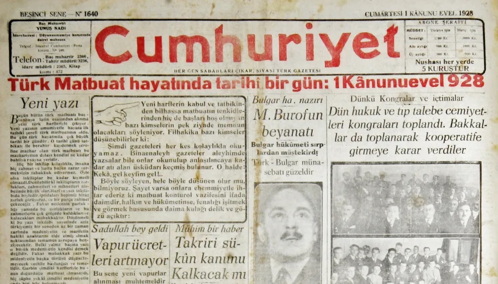 1/XI/1928’de “Türk Harflerinin Kabul ve Tatbiki Hakkında Kanun” ile binlerce yıllık Latin alfabesi bir anda Türk alfabesi oldu. Resmi ve hususi yazışmaların bununla yapılması emredildi. Aksine davrananlara ceza getirildi. Bu arada mızıka şefi Zeki Üngör’e bir de Alfabe Marşı bestelettirildi. Devamlı çaldırılarak halkın kafasına inkılabı nakşettirdi.